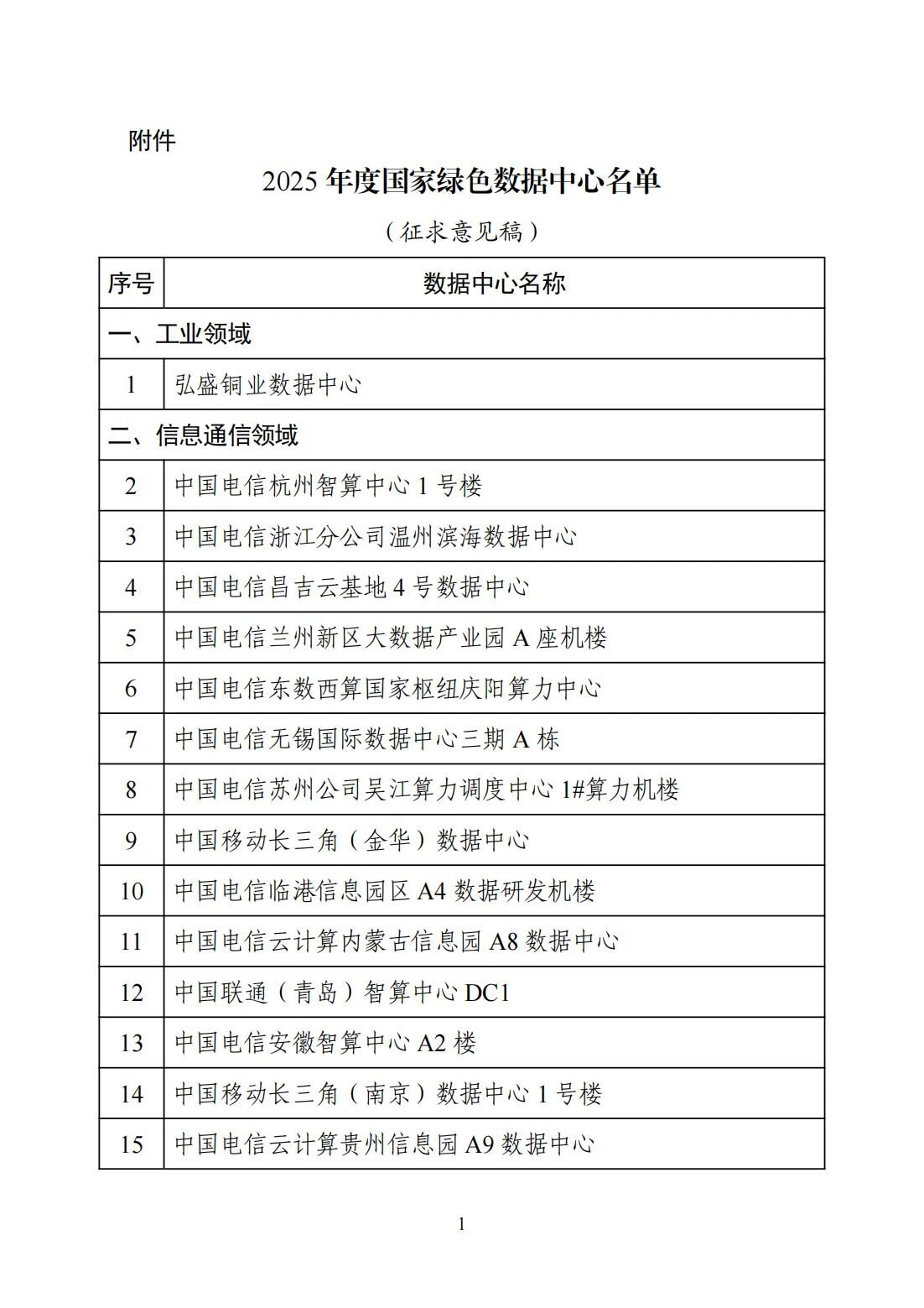 10月28日,工信部節(jié)能與綜合利用司公示2025年度國家綠色數(shù)據(jù)中心名單。根據(jù)《工業(yè)和信息化部辦公廳國家發(fā)展改革委辦公廳商務部辦公廳金融監(jiān)管總局辦公廳國管局辦公室國家能源局綜合司關(guān)于組織開展2025年度國家綠色數(shù)據(jù)中心推薦工作的通知》(工信廳聯(lián)節(jié)函〔2025〕279號),現(xiàn)將2025年度國家綠色數(shù)據(jù)中心名單予以公示,公示時間為2025年10月28日至11月3日。